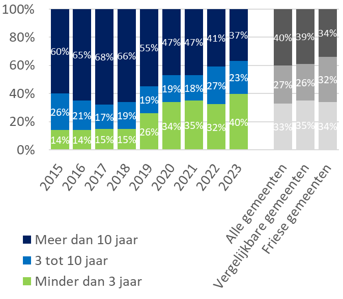 Er stromen relatief veel medewerkers uit, de komende vijf jaar 81 medewerkers (vanwege bereiken AOW-gerechtigde leeftijd); we hebben het dan over 13,3 % van het totaal.
