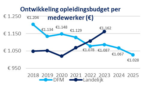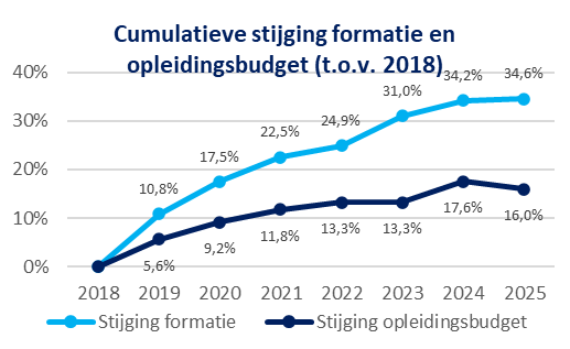Gezien de relatief grote uitvoeringsorganisatie investeren wij fors in veiligheidsopleidingen wat een substantieel deel van het opleidingsbudget opsoupeert. Dit leidt tot een lager vrij beschikbaar opleidingsbudget. Aandacht en ruimte voor ontwikkeling is een groeiende belangrijke secundaire arbeidsvoorwaarde die een positieve bijdrage levert aan het zijn van een aantrekkelijke werkgever. Gezien de huidige formatie binnen HR is er geen ruimte om hier op in te zetten.